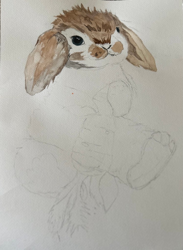 “Hopping into the weekend with some watercolor vibes 🐇🎨✨ WIP – still layering the softness and those fuzzy ears. Stay tuned! #watercolor #rabbitart #wip #slamdunksandsketches”